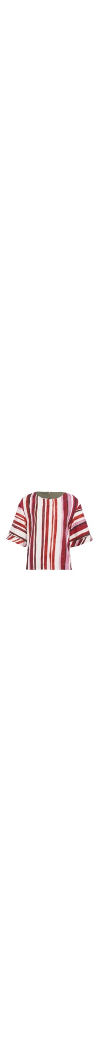 As listras são modernas e atemporais, além de trazer um "que" divertido ao look. A blusa estampada é confeccionada em tecido encorpado, possui modelagem oversized, mangas 3/4 amplas, decote redondo e fechamento posterior por botões.