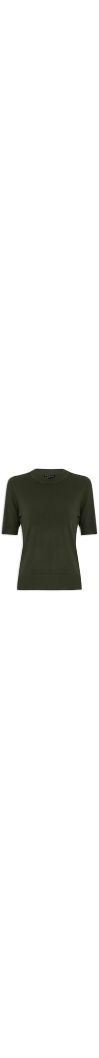 A Blusa Verde é Confeccionada Em tricot Com Alta Elasticidade. A Peça Solta Ao Corpo Possui Gola Redonda, Mangas Curtas, Gola, Mangas E Barra Com Acabamento,