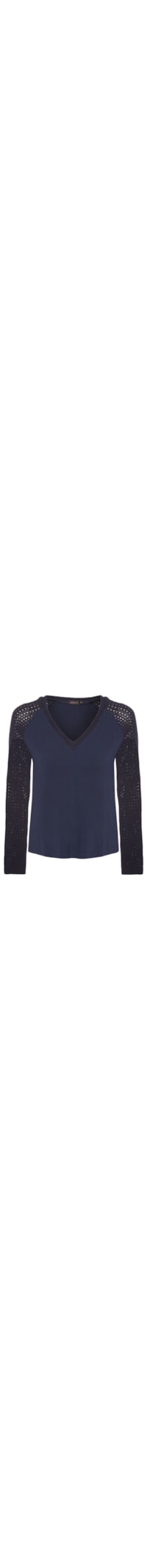 - A blusa azul marinho é confeccionada em malha com mangas de tricot. A peça de caimento ajustado possui decote V canelado e mangas longas de modelo raglan com punhos canelados.