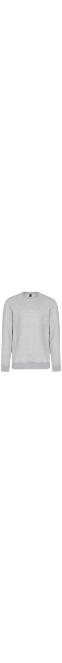 A blusa cinza é confeccionada em moletom com média elasticidade. A peça solta ao corpo possui gola careca, mangas longas e acabamento canelado na gola, punhos e barra.