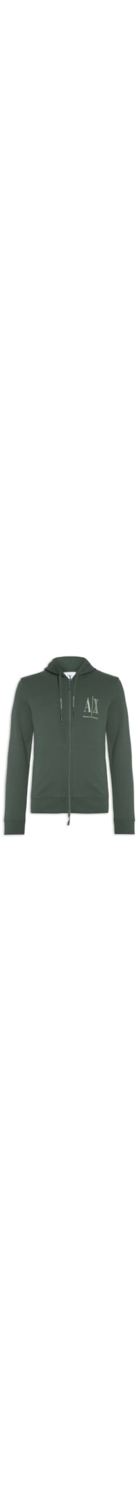 O moletom verde é confeccionado por moletom com elasticidade média. A peça possui capuz com cordão embutido, mangas longas com acabamento canelado nos punhos, logo da marca bordado na altura do tórax em cor contrastante, bolsos frontais, barra com acabaamento canelado e fechamento por zíper frontal.