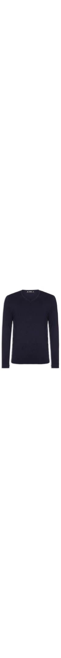A blusa azul marinho é confeccionada em tricot. A peça possui gola V, mangas longas, shape solto, caimento reto e acabamento canelado.