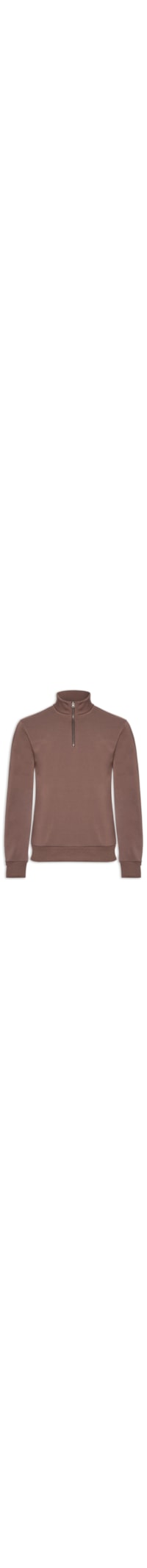 A blusa moletom Marrom é confeccionada em malha com média elasticidade. Possui gola alta com fechamento por zíper, mangas longas, ombros com caimento regular, shape reto, acabamento canelado nos punhos e barra e acabamento pespontado.