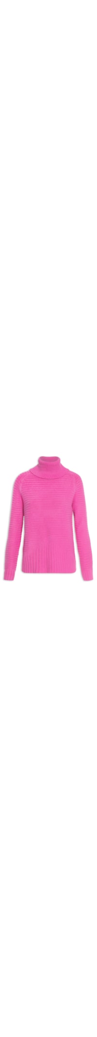A blusa rosa é confeccionada em tricot tramado em diferentes pontos. A peça possui gola alta, mangas longas de modelo raglan, shape solto, caimento reto e acabamento canelado.