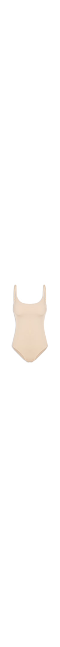 O body bege é confeccionada por malha de poliamida com alta elasticidade. A peça justa ao corpo possui decote reto, alças finas com ajuste, bojo removível e fechamento por botão de pressão inferior.
