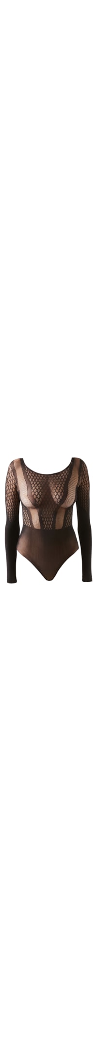 Body feminino de manga comprida, confeccionado em rede de losangos, que traz um toque de sensualidade e modernidade à peça. O design geométrico da rede cria um efeito visual intrigante, ideal para quem busca um visual arrojado e sofisticado. O body conta com ganchos práticos para ajustar a calcinha, garantindo um ajuste seguro e regulável. Perfeito para ser usado tanto como lingerie íntima quanto como uma peça ousada para compor um look mais provocante.