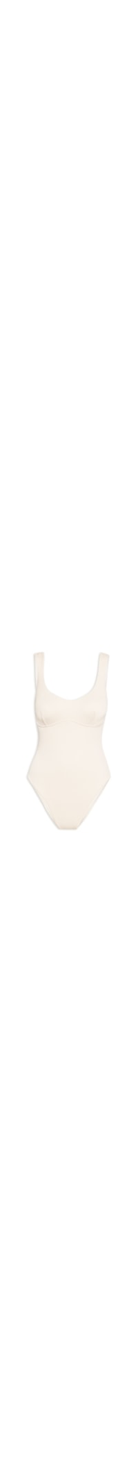 O body bege é confeccionado em malha ccotelê de média elasticidade. A peça justa ao corpo, possui decote em U, alças largas, recorte abaixo do busto e na parte posterior e forro.