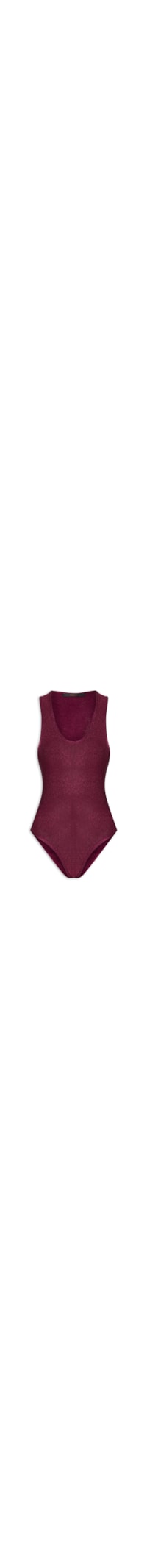O body vinho é confeccionado em tricot com média elasticidade. A peça justa ao corpo possui decote u, alças médias, cavas alongadas, leve transparência, e fechamento inferior por botões.
