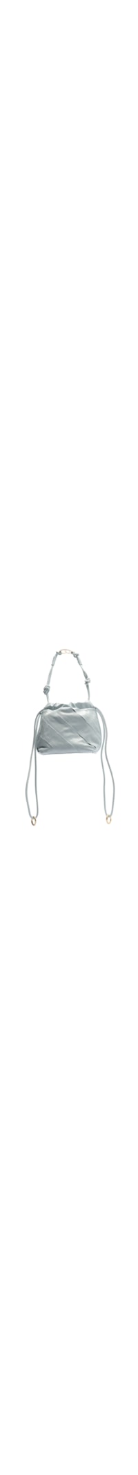 A bolsa azul é produzida em couro. A peça de modelo bucket*, possui tamanho médio, compartimento interno amplo com tag de couro da marca aplicado, alça de mão em cordão duplo com detalhe metalizado, alças longas com detalhe de mosquetão metálico na parte superior, base reta, forro têxtil, acabamento matelassê e fechamento superior por cordão.