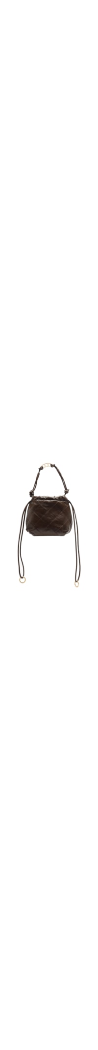 A bolsa marrom é produzida em couro. A peça de modelo bucket*, possui tamanho médio, compartimento interno amplo com tag de couro da marca aplicado, alça de mão em cordão duplo com detalhe metalizado, alças longas com detalhe de mosquetão metálico na parte superior, base reta, forro têxtil, acabamento matelassê e fechamento superior por cordão.
