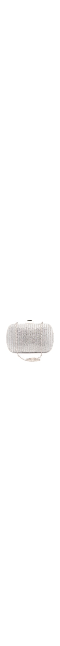 A bolsa prata é produzida por material sintético com superfície em hotfix. A peça de modelo clutch*, possui tamanho pequeno, formato retangular, laterais arredondas, parte posterior em material têxtil, compartimento interno amplo, alça removível em corrente elos e fechamento por encaixe.