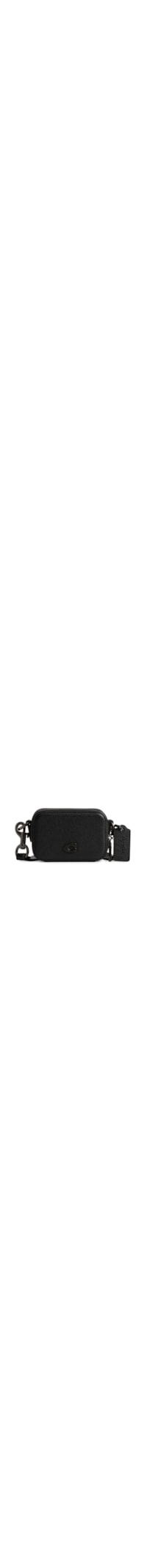A bolsa preta é produzida em couro com superfície texturizada. A peça de modelo crossbody* possui tamanho pequeno, formato retangular, compartimento interno amplo com forro, logo metálico da marca aplicado na parte frontal, chaveiro da marca aplicado lateral, alça alongada removível e regulável e fechamento superior por zíper.