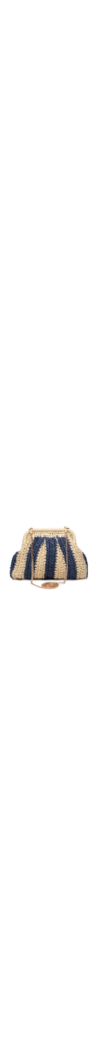 A bolsa bege é confeccionada em palha. A peça de modelo clutch* possui tamanho pequeno, formato meia-lua, compartimento interno amplo com forro em material têxtil, alça longa em corrente removível, recortes em cor contrastante.