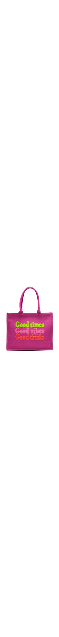 A bolsa rosa é produzida em palha. A peça de tamanho grande possui formato retangular, duas alças de mão em material têxtil, escrita na parte frontal aplicada em superfície texturizada em cores contrastantes, forro, e fechamento superior por zíper.