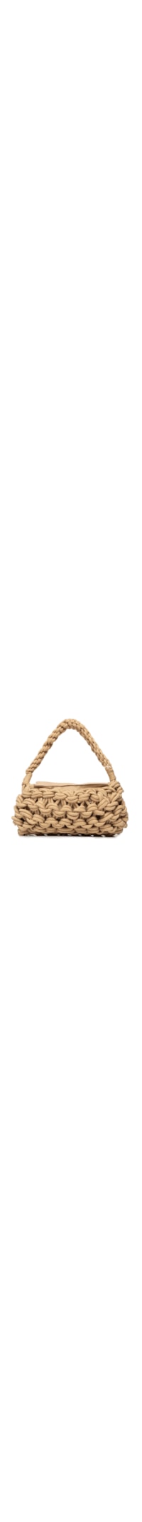 A bolsa bege é produzida em crochê. A peça de modelo tiracolo possui tamanho médio, formato retangular, alça fixa, alça longa removível, compartimento interno, bolso interno, forro e fechamento superior por zíper.