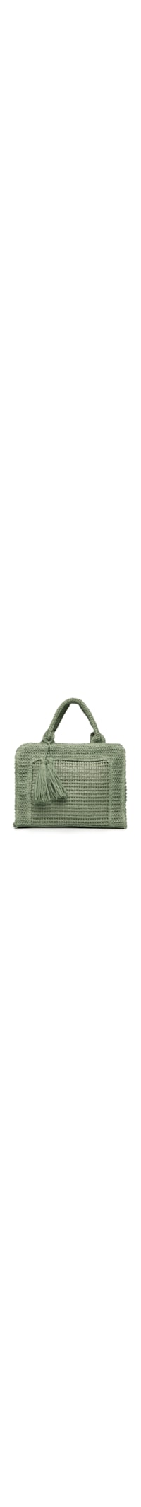 A bolsa verde é produzida em palha. A peça de modelo tiracolo possui tamanho médio, formato retangular, argolas aplicadas nas partes laterais, detalhe de amarração com tássel na parte frontal, alça fixa, alça longa removível, compartimento interno, bolso interno, forro e fechamento superior por zíper.