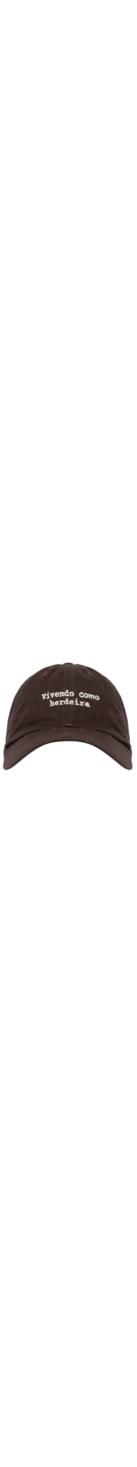 O boné marrom é produzido em sarja. A peça possui aba curva, seis gomos com vias respiráveis, frase bordada em cor contrastante na parte frontal, detalhe de botão aplicado no topo, acabamento pespontado e fechamento posterior por strapback com fivela metálica ajustável.
