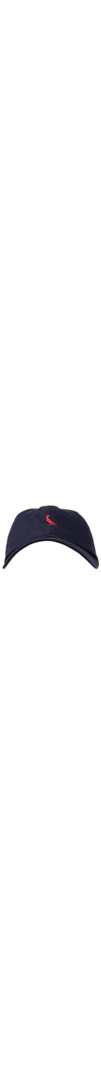 O boné azul é produzido em tecido plano sem elasticidade. A peça possui aba curva com pespontos aparentes, copa estruturada com recortes e ilhós bordados para respirabilidade, logo da marca bordado na parte frontal em cor contrastante, parte interna em cor contrastante, nome da marca bordado na parte posterior, acabamento pespontado e fechamento posterior por strapback* com tira ajustável e fivela metálica.