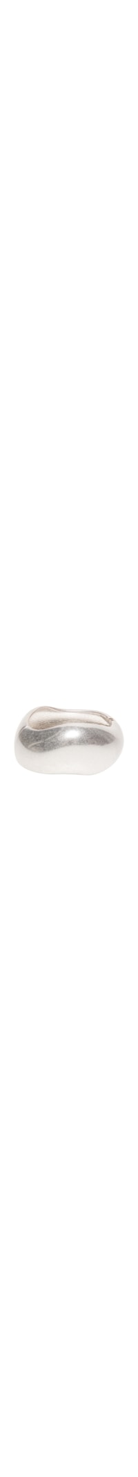 O bracelete prateado é produzido em metal. A peça possui espessura grossa, formato orgânico, acabamento fosco e fechamento por dobradiça.