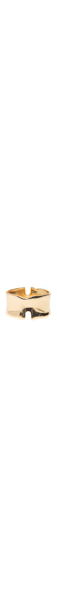 O bracelete dourado é produzido em metal. A peça possui espessura grossa, formato orgânico, acabamento polido e fechamento por encaixe.