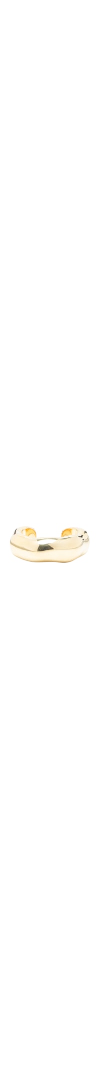 O bracelete dourado é produzido em metal. A peça possui espessura larga, formato orgânico, abertura para encaixe com detalhe de aplicações de cristais e acabamento polido.