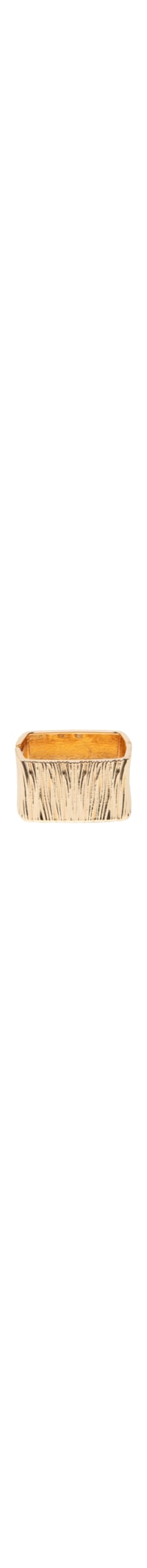 O bracelete dourado é produzido em metal. A peça possui espessura grossa, formato quadrado, acabamento texturizado e fechamento por fecho de encaixe.