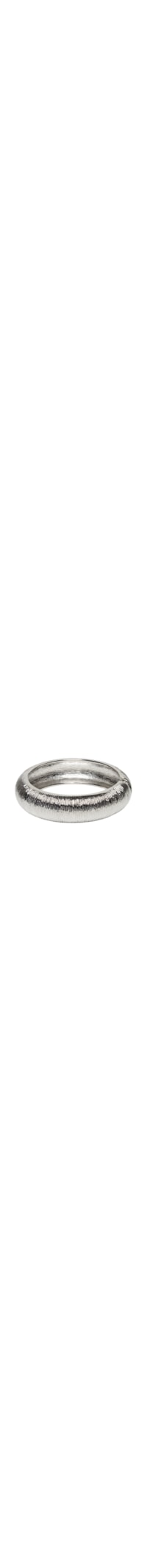 O bracelete prateado é produzido em metal. A peça possui espessura média, acabamento texturizado e fechamento por encaixe.