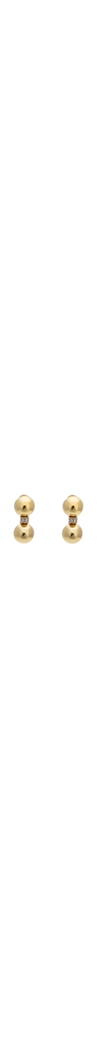 O brinco dourado é produzido em metal. A peça possui tamanho médio, superfície com aviamentos esféricos com zircônias intercaladas e fechamento posterior por tarraxa.