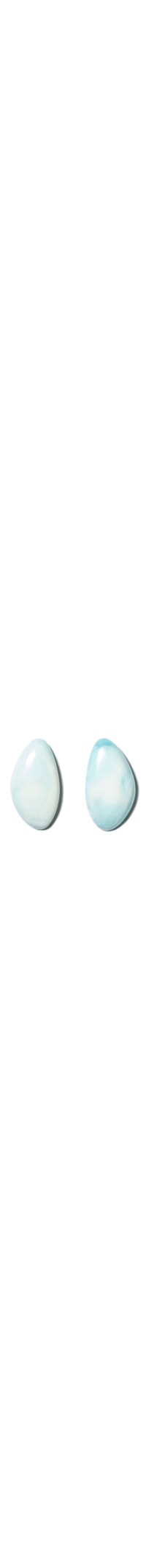 O brinco azul é produzido em resina com efeito marmorizado. A peça possui tamanho grande, formato assimétrico levemente alongado, acabamento polido e fechamento posterior por presilha de pressão.