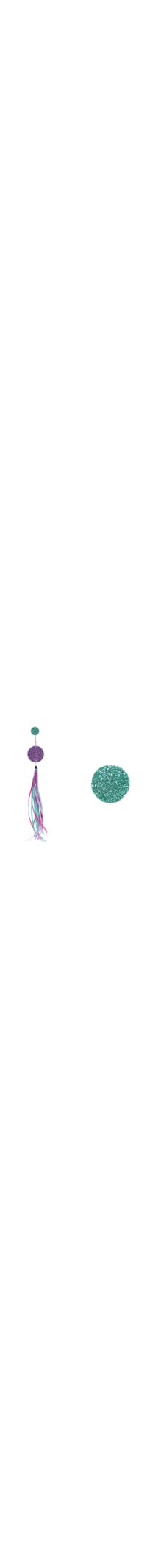 O brinco roxo é produzido em EVA com superfície em glitter. A peça possui tamanhos distintos sendo um pequeno e outro alongado, base arredondada na cor verde, aplicação de corrente metálicas de elos entrelaçados com detalhe arredondado 3D e ponteira em tassel de fitas acetinadas em cores contrastantes e fechamento posterior por tarraxa.
