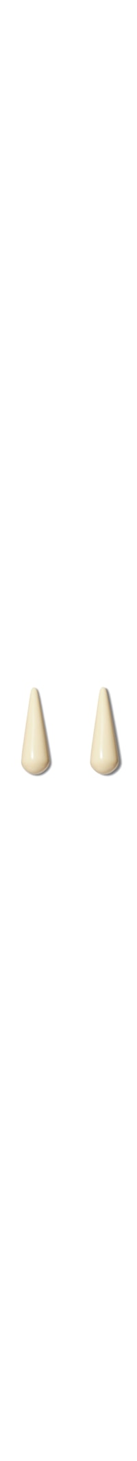O brinco off white é produzido em resina. A peça possui tamanho médio, formato de gota alongada, acabamento polido e fechamento posterior por tarraxa.