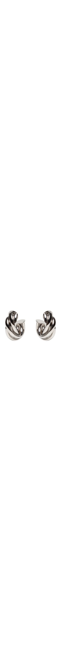 O brinco prateado é produzido em metal. A peça de modelo argola possui espessura larga, tamanho médio, detalhes de torções em camadas, acabamento polido e fechamento posterior por tarraxa.