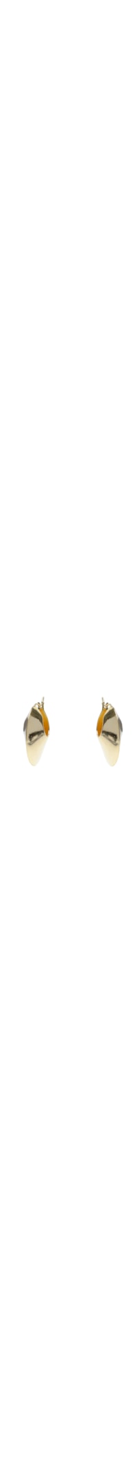 O brinco dourado é produzido em metal com banho de ouro 18K. A peça de modelo argola possui formato arredondado, espessura larga, parte interna vazada com o nome da marca timbrado, acabamento polido e fechamento por encaixe.