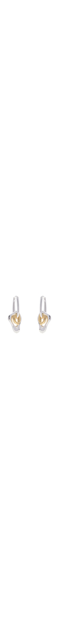 O brinco prata é produzido em metal com banho de prata 950. A peça possui tamanho médio, argola superior fina e alongada, pingentes em formato orgânico com tamanhos distintos e banhos contrastantes, acabamento polido e fechamento posterior por encaixe.