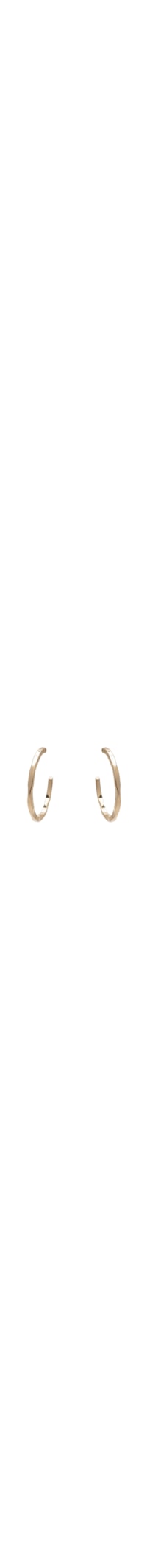 O brinco dourado é produzido em metal. A peça possui formato arredondado, espessura fina, superfície texturizada e fechamento posterior por tarraxa.