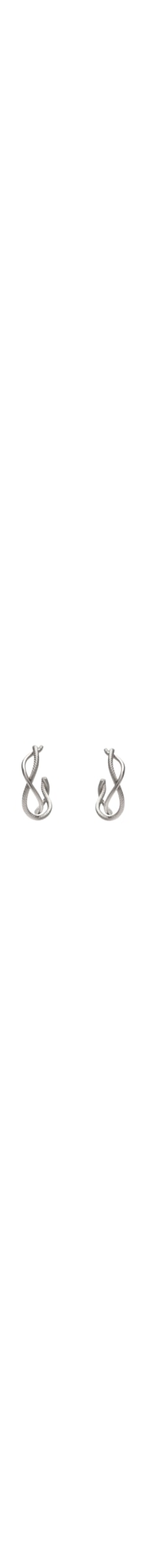 O brinco prata é produzido em metal. A peça possui tamanho médio, espessura fina, formato arredondado, elos entrelaçados, sendo um deles com superfície texturizada, e fechamento posterior por tarraxa.