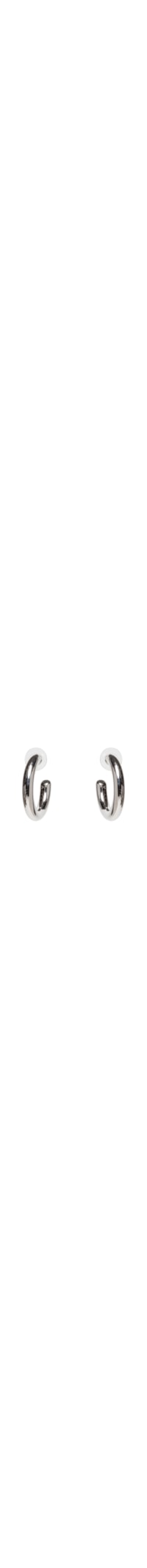 O brinco prateado é produzido em metal. A peça de modelo argola possui tamanho médio, espessura fina, formato arredondado, acabamento polido e fechamento posterior por tarraxa.