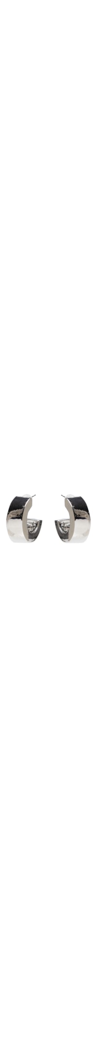 O brinco prateado é produzido em metal. A peça de modelo argola possui espessura e tamanho médio, acabamento polido e fechamento posterior por tarraxa.