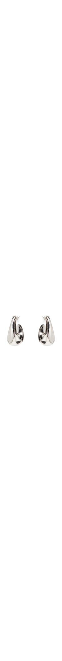 O brinco prateado é produzido em metal. A peça possui tamanho médio, espessura grossa, formato oval e fechamento posterior por tarraxa.