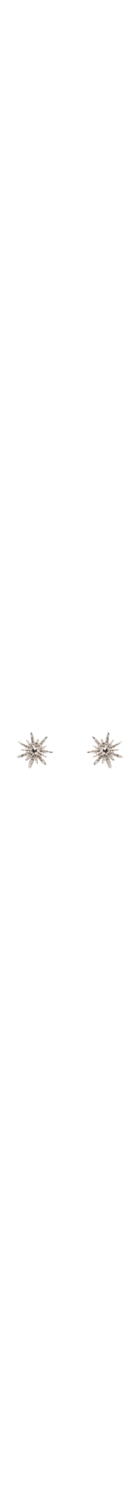 O brinco prateado é produzido em metal. A peça possui tamanho médio, formato figurativo de estrela, superfície com aplicações de strass e fechamento posterior por tarraxa.