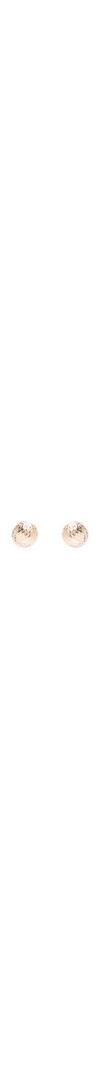 O brinco dourado é produzido em metal com superfície texturizada. A peça possui espessura média, tamanho pequeno, acabamento polido e fechamento posterior por tarraxa.