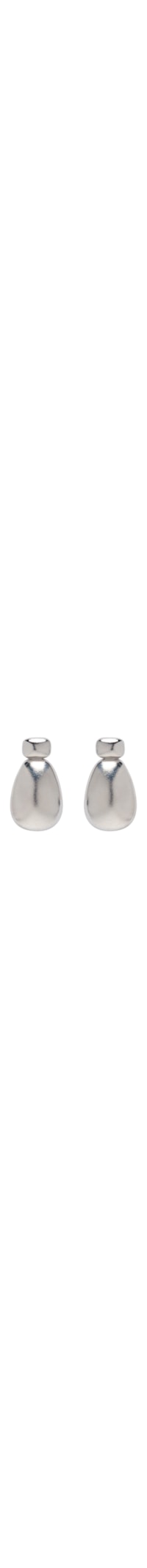 O brinco prata é produzido por metal com banho em niquel. A peça possui tamanho médio, formato oval com parte superior retangular, acabamento fosco e fechamento por tarraxas posteriores.
