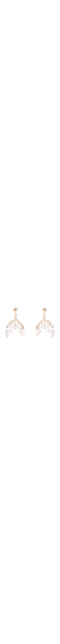 O brinco dourado é produzido em metal. A peça possui tamanho médio, esferas, pingentes em formato de conchas e orgânico na cor branca com superfície perolada, acabamento texturizado e fechamento posterior por tarraxa.