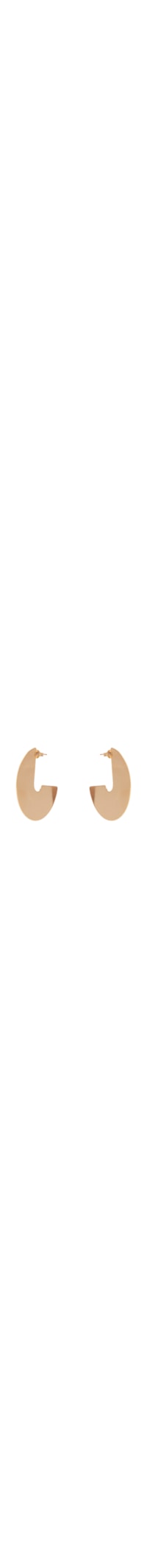 O brinco dourado é produzido em metal com banho de ouro 18K. A peça de modelo argola possui tamanho médio, chapa arredondada com recorte, acabamento polido e fechamento posterior por tarraxa.