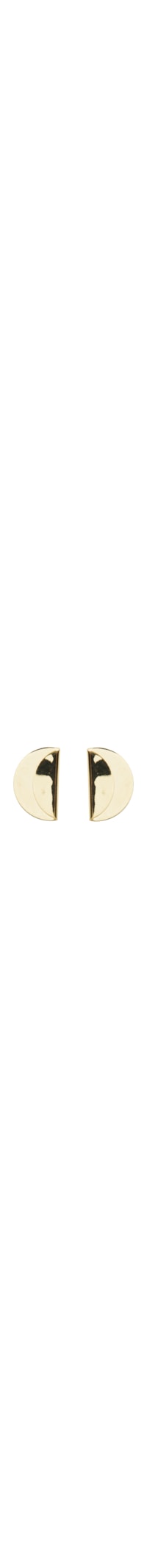 O brinco dourado é produzido por metal com banho em ouro 18k. A peça possui tamanho médio, espessura fina, esfera com efeito dobrado, acabamento polido e fechamento por tarraxa posterior.