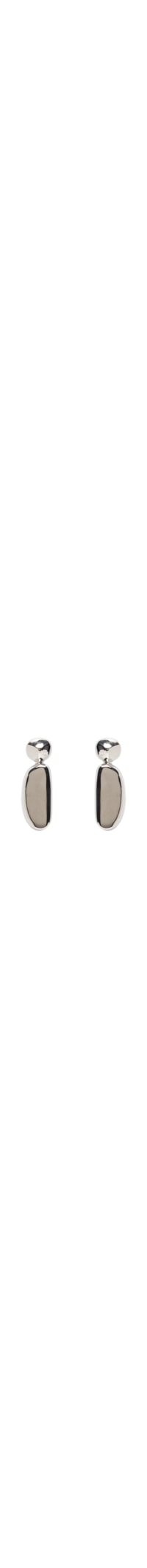 O brinco prateado é produzido em metal. A peça possui tamanho médio, base arredondada, formato alongado e fechamento posterior por tarraxa.