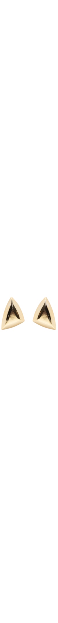 O brinco dourado é produzido em metal. A peça possui espessura fina, formato geométrico, acabamento polido e fechamento posterior por tarraxa.