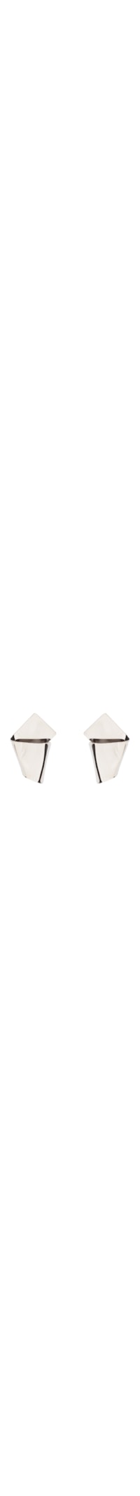 O brinco prateado é produzido em metal. A peça possui formato geométrico orgânico, acabamento polido e fechamento posterior por tarraxa.