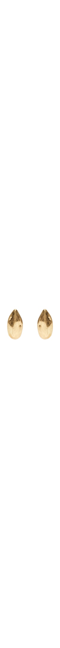 O brinco dourado é produzido metal. A peça possui tamanho médio, formato orgânico e figurativo de gota, acabamento polido e fechamento posterior por tarraxa.