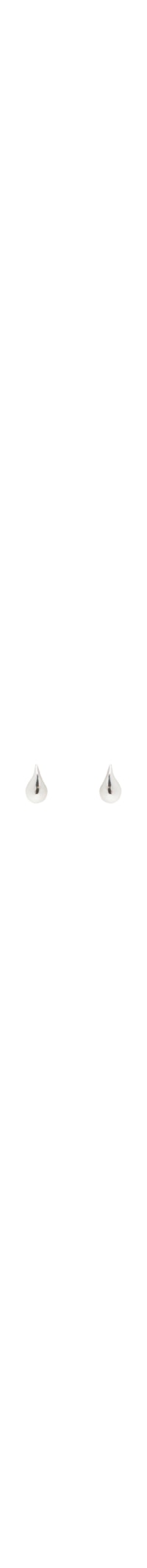 O brinco prateado é produzido em metal com banho de alta cobertura em platina. A peça possui tamanho pequeno, formato degota, parte superior curvada, acabamento polido e fechamento posterior por tarraxa.